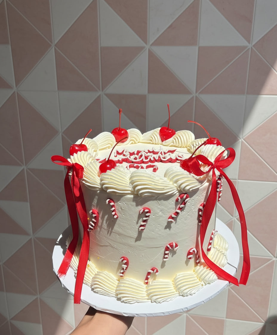 Out with the new, in with the old! Your choice of flavour and colour scheme on a fun vintage Christmas themed cake design.