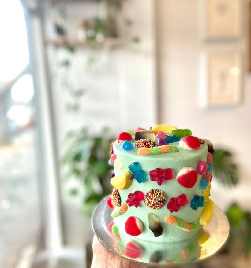 Your choice of flavour on a colourful lolly studded cake. Something sweet and sour to make any celebration a little bit funner!